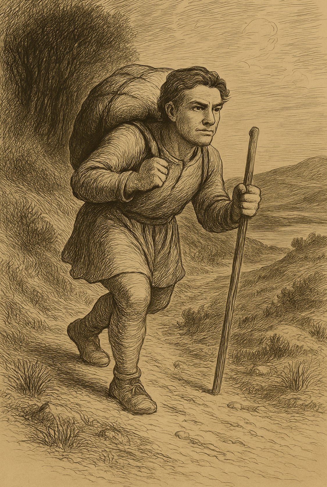 I think of Christian in Pilgrim’s Progress— a brave, weary soul, tired yet determined, pressing on.