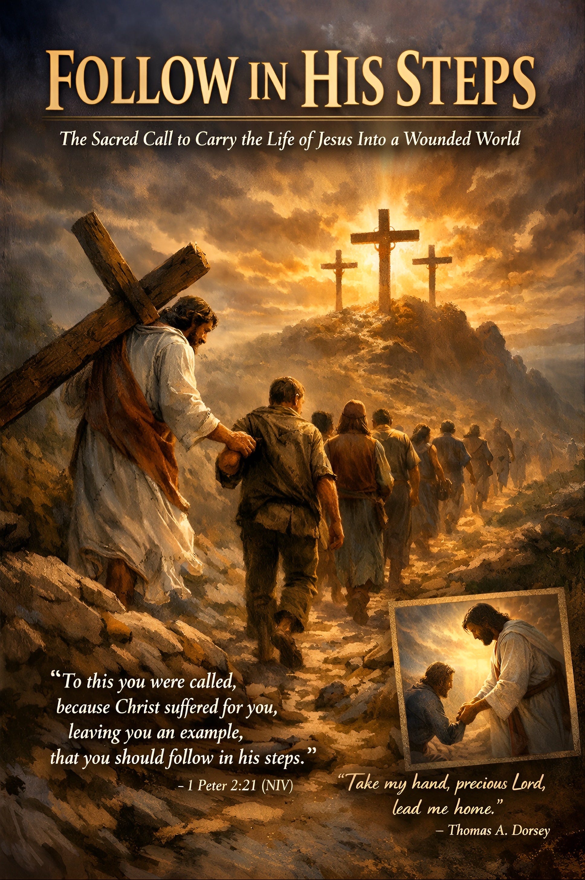 “To this you were called, because Christ suffered for you, leaving you an example, that you should follow in his steps.” — 1 Peter 2:21 (NIV) “Hear my cry, hear my call Hold my hand lest I fall Take my hand precious Lord, lead me home.” — Thomas A. Dorsey Beloved… there are moments in Scripture where the Holy Spirit does not merely teach—He calls. Not gently. Not casually. But with holy weight. And this is one of those moments. Peter begins with words that are so direct… so piercing… so final… that they feel like the trumpet call of heaven itself: “To this you were called…” Not to comfort. Not to popularity. Not to a life where everything is neat, predictable, and safe. But to this. It’s as though the Spirit pulls us out of the noise… out of the rush… out of the endless questions that swirl in our minds… And He points with a steady finger to one sacred path and says: “Right there. That is your calling.” I can almost see it… A crowd of weary believers standing in front of Peter. Some are wounded. Some are confused. Some are exhausted. Some feel forgotten. Some are asking the same question that so many hearts still whisper in our generation: “Lord… what am I supposed to do with my life?” And Peter, with the tenderness of a father… and the authority of a man who has been broken and rebuilt by grace… speaks like a wise elder who has walked with Jesus long enough to know what matters most. And he says: “To this you were called…” In other words… This is not a suggestion. This is not for a few. This is the path of every true disciple. BECAUSE CHRIST SUFFERED FOR YOU Peter doesn’t let us drift into vague spirituality. He takes our face in his hands, and he turns our eyes toward the Cross. “Because Christ suffered for you…” Beloved… we throw that word around so easily—suffered. But heaven does not use it lightly. Christ did not merely suffer in theory. He suffered in His body. He suffered in His soul. He suffered in His breath. He suffered in His blood. He suffered in His loneliness. He suffered in His silence. He was beaten—again, and again, and again—until the human eye could hardly recognize Him. His back was torn open. Not scraped. Not bruised. Torn. Then a crown of thorns was pressed into His head… that holy head… that radiant head… the same head that will wear the crown of eternal dominion forever and ever. They didn’t crown Him with gold. They crowned Him with mockery. And still… He didn’t call the angels. He didn’t strike them down. He didn’t step off the path. He walked forward… and forward… and forward… Not because nails could hold Him. But because love would not let Him turn back. A heavy wooden cross pressed into torn flesh. Every step drove the thorns deeper. Every fall bruised bone and opened skin. The dust of the earth mixed with the blood of the Son of God. And then… they lifted Him up. Hands nailed. Feet nailed. Every breath became a battle. Every inhale stole strength. Every exhale carried pain. Hours passed. The sky grew dark. The earth trembled. Hell rejoiced. And then the moment that no human heart can fully comprehend… The Father turned His face away. The sin of the world—your sin… my sin… the darkest things we never told anyone… the failure that still haunts the mind… the secret guilt… the compromise… the rebellion… the hatred… the lust… the pride… All of it… placed upon Him. And Jesus cried with a voice that has echoed through eternity: “My God, My God, why have You forsaken Me?” Beloved… He didn’t suffer because He had to. He suffered because He chose you. He suffered because your soul was worth the price. He suffered because mercy was stronger than justice. He suffered because love had already decided: I will have them back. LEAVING YOU AN EXAMPLE And Peter says… “Leaving you an example…” Not only a sacrifice to admire. But a life to follow. Not only a Cross to sing about… But a pathway to walk. And then I remember who is writing this. This is Peter. The man who once promised, “Even if everyone leaves You, I never will.” The man who drew his sword in religious fire… and then lost his courage in a servant girl’s question. The man who denied Jesus… not once… not twice… But three times. And the third time… the rooster crowed… …and Jesus turned and looked at him. Not with rage. Not with disgust. Not with rejection. But with that look that breaks a man open. The Bible says Peter went out and wept bitterly. He didn’t just cry. He collapsed. He was the disciple who failed publicly. He was the one who broke his own promises. He was the one who couldn’t stand when it mattered most. And yet… After the Resurrection… heaven sent a message that still melts me every time I read it: “Go… tell His disciples… and Peter.” And Peter. Not because Peter deserved it… But because Jesus never stopped loving the one who fell. Beloved… I don’t know what you’ve done. I don’t know what you’ve carried. I don’t know what nights you’ve lived through. But I know this… Jesus still says, “And you.” THE ROAD BACK TO POWER Peter didn’t just get forgiven. He got restored. He didn’t just get welcomed back into the circle. He got remade. Jesus met him again… and not in a temple… not in a pulpit… But by the sea. Jesus cooked breakfast. Because sometimes the deepest healing doesn’t come through thunder… It comes through tenderness. A fire on the shore. Bread. Fish. A quiet moment. And then the question: “Do you love Me?” Not, “Why did you fail?” Not, “How could you deny Me?” Just… “Do you love Me?” Three times. The same number as Peter’s denial. Jesus wasn’t rubbing it in. He was lifting him out. And then Jesus spoke the words that rebuilt Peter’s shattered calling: “Feed My sheep.” Beloved… the same man who denied Jesus in fear… stood up in Acts 2 filled with the Hol
